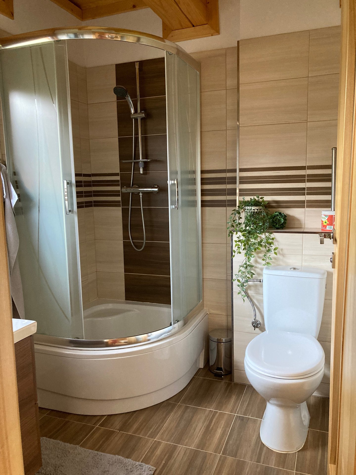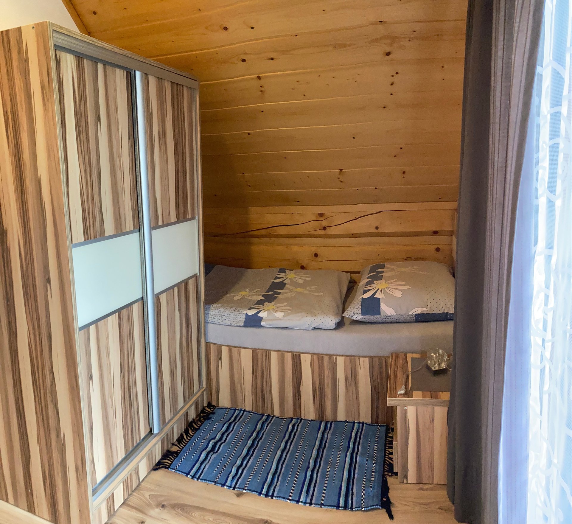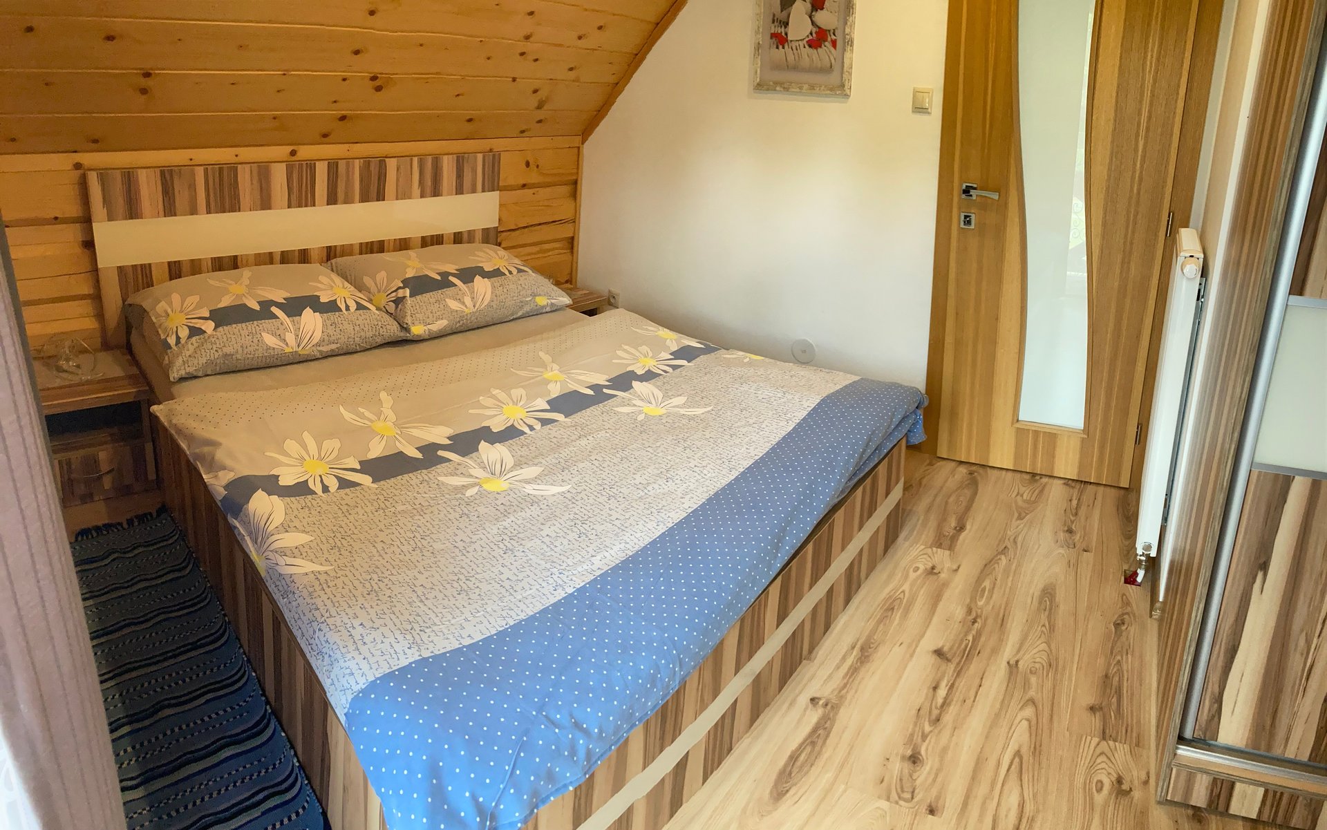 Poschodie chaty je určené na oddych a zaslúžený spánok, ktorý si doprajete v jednej z dvoch 3-lôžkových spální, každá s manželskou posteľou a samostatným lôžkom. Z obidvoch spální vedie vstup na balkón. V chate je Vám k dispozícii kúpeľňa so sprchovacím kútom, toaletou a ďalšia samostatná toaleta. Bezplatné WiFi pripojenie na internet je zabezpečené vo všetkých priestoroch ubytovania.